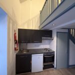 The bedroom is located on the upper level in a mezzanine style arrangement, overlooking the kitchen below, creating a modern and open feel to the apartment. The property also benefits from a well appointed bathroom and good natural light throughout.