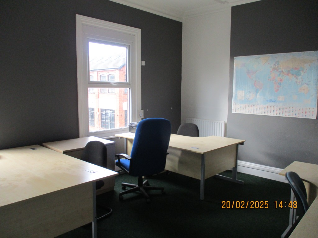 Available to let 2 floors of office space with own secure entrance. First floor reception area, large open plan offices, large board room. Stairs leading to top floor with more office space. Kitchen with sink. Bathroom with toilet and sink. Good location for Walkden Town Centre. Complete with office furniture, desks, cabinets etc. Not to be missed