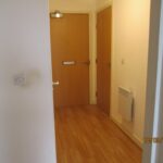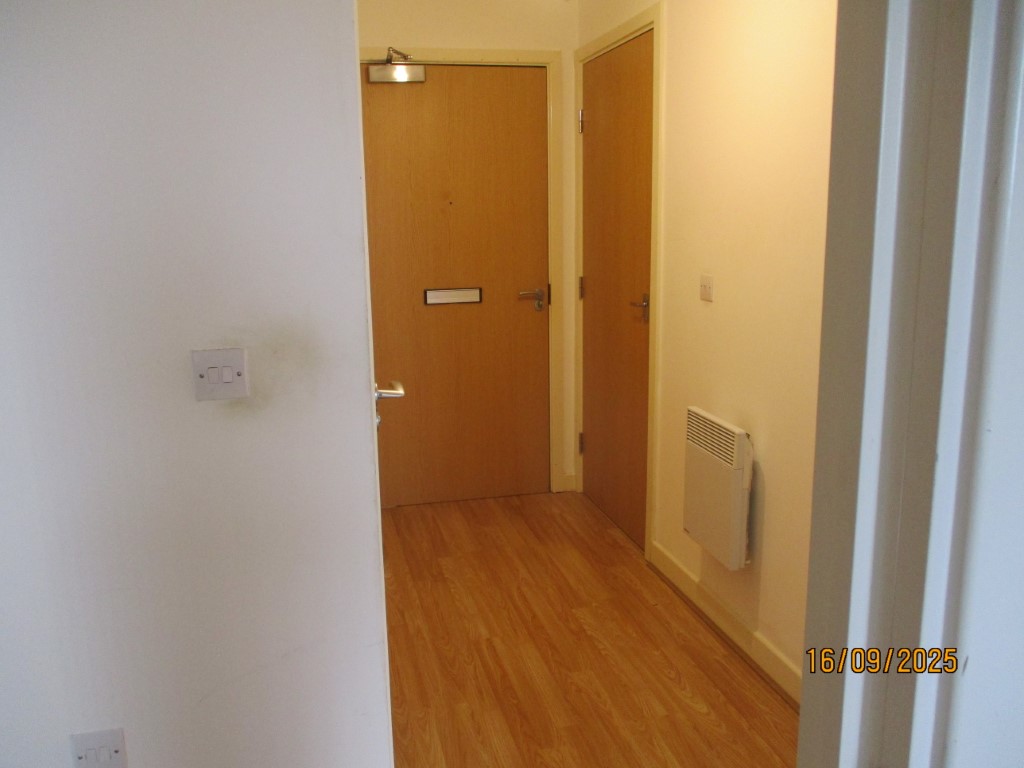 Painted magnolia walls. Doors to all rooms. Wall mounted electric heater.