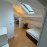 Spacious top floor studio flat with skylights, offering a bright and open living space. Accessed via a communal entrance with a private front door, the property features an open plan living and kitchen area and a private shower room. Suitable for up to two occupants and available immediately.
