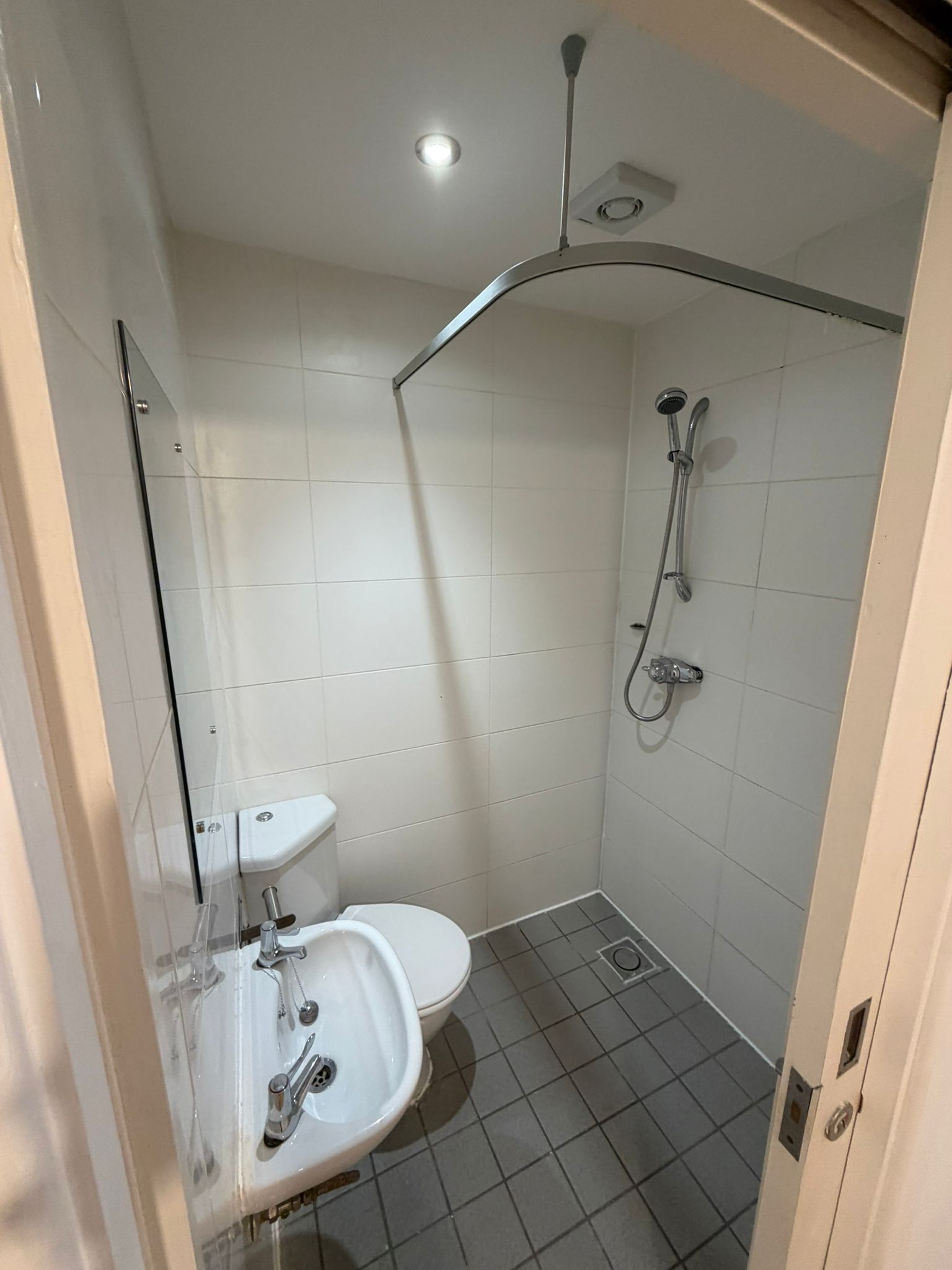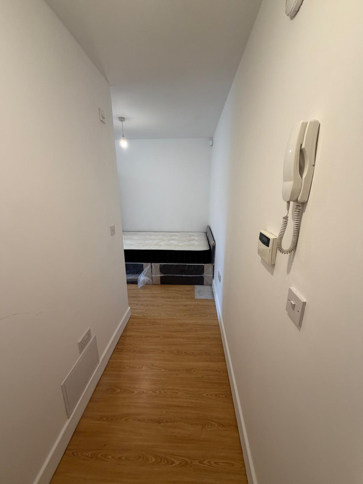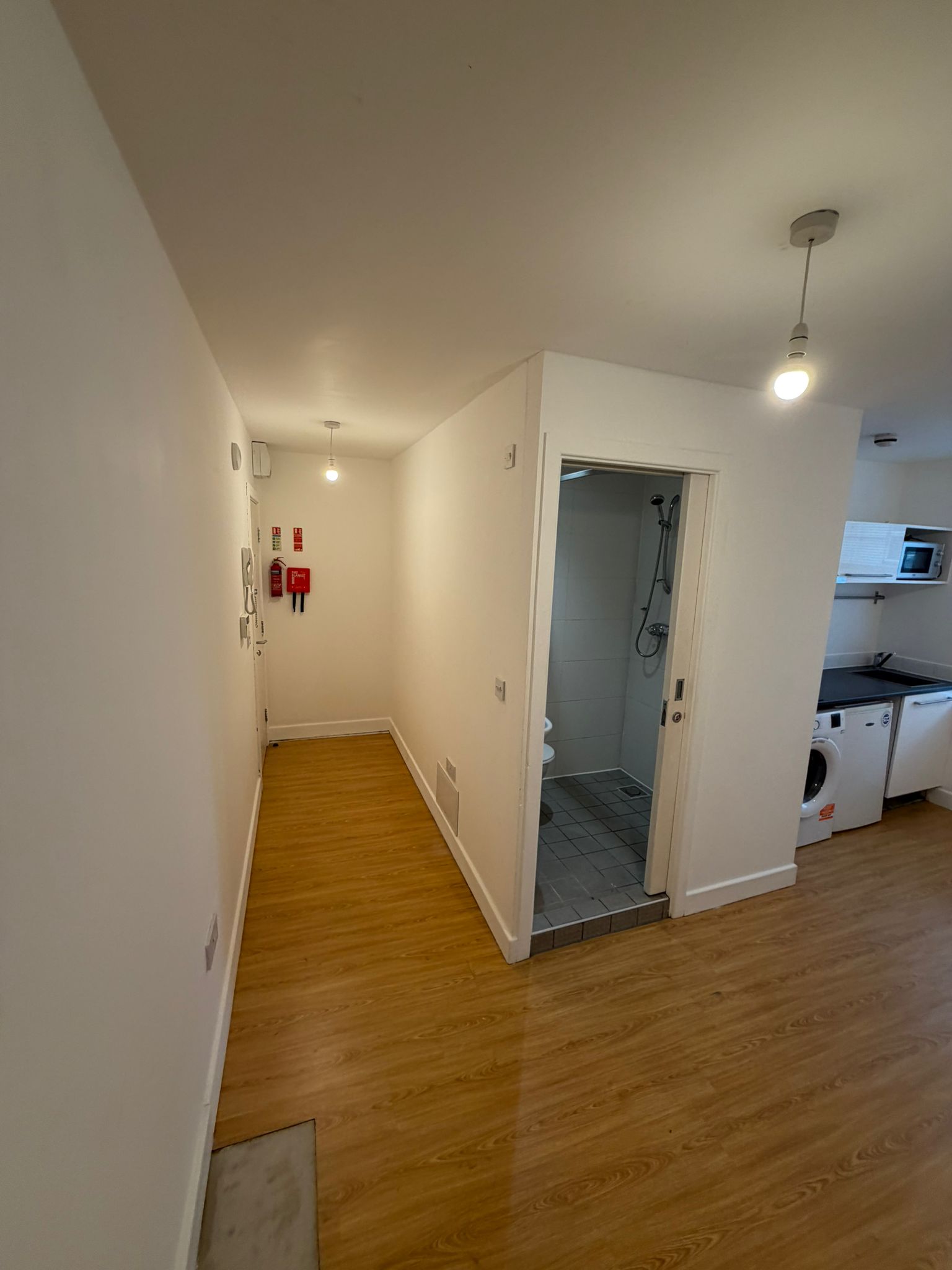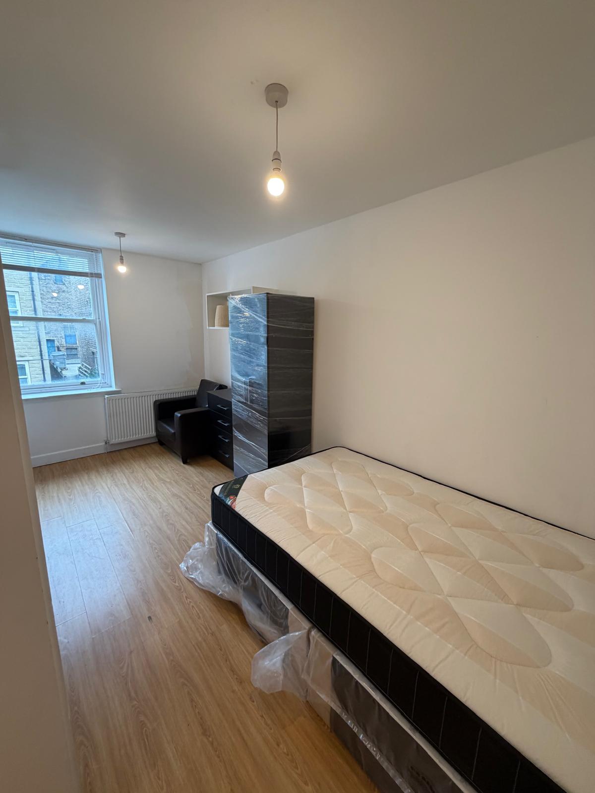 Flat 13 at 16–18 Bath Street is a compact studio flat, ideally located close to Huddersfield town centre and local amenities.The property is accessed via a communal entrance, with the added benefit of its own private front door leading directly into the studio. Inside, the open plan living and kitchen area is neatly laid out and comes fully furnished, including a bed, wardrobe, table and chair.The fitted kitchen includes a two ring electric hob, fridge freezer, microwave, washing machine, sink, and storage units, making the space practical for everyday living.The private bathroom is fitted with a shower, toilet, and wash basin, finished to a clean and functional standard.This studio is offered fully furnished, is available immediately, and is suitable for single occupancy only.